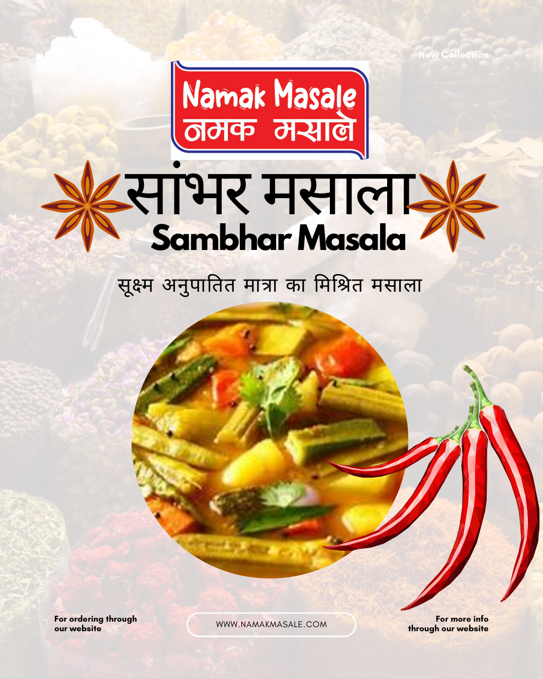 “Bhartiya Sambhar Masala” refers to the spice blend used to prepare Sambar, a popular South Indian dish. Sambar is a flavorful lentil-based stew or curry made with a variety of vegetables, tamarind, and spices. The spice blend, or masala, plays a crucial role in imparting the distinctive taste and aroma to this dish.